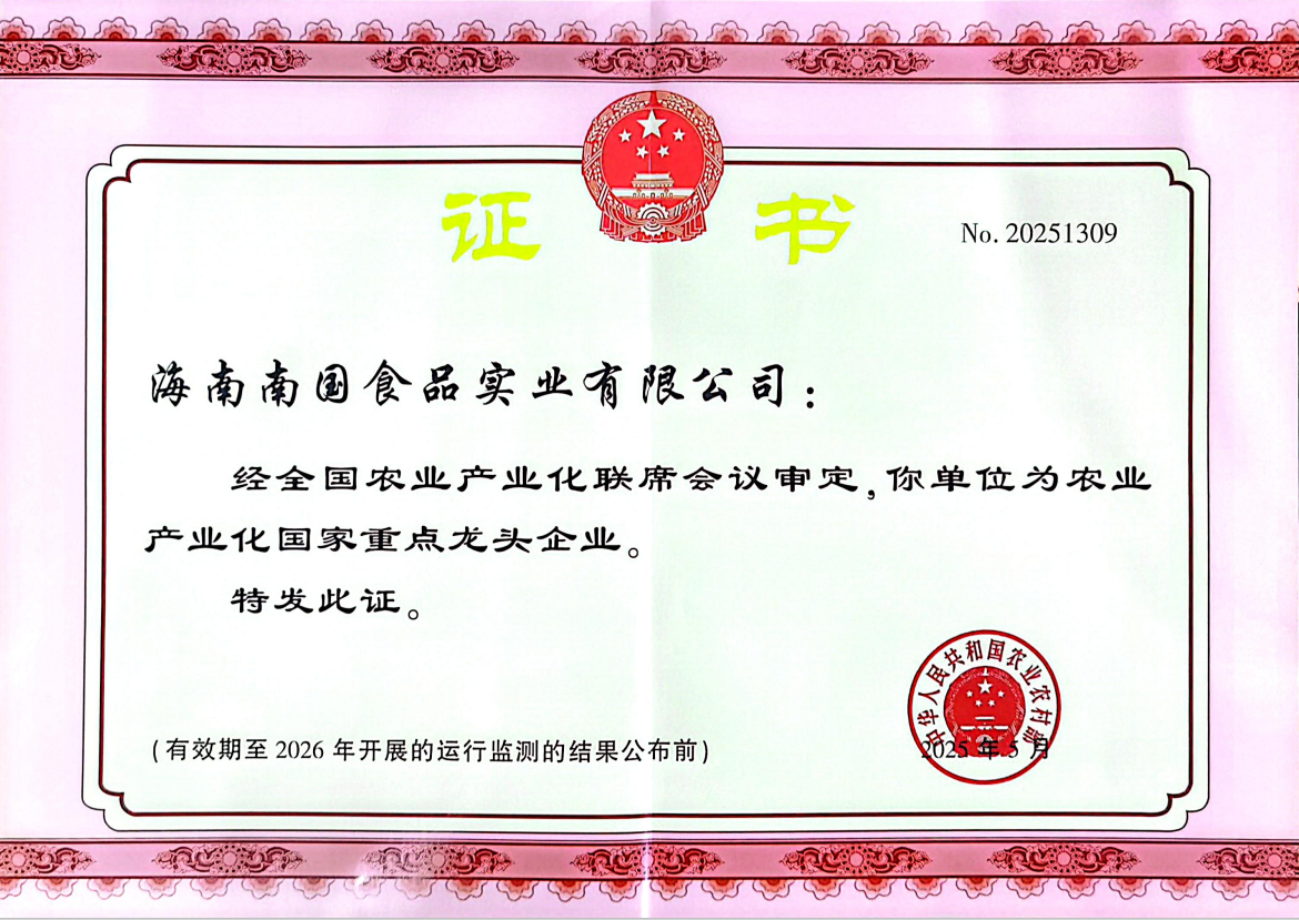 荣获农业产业化国家重点龙头企业